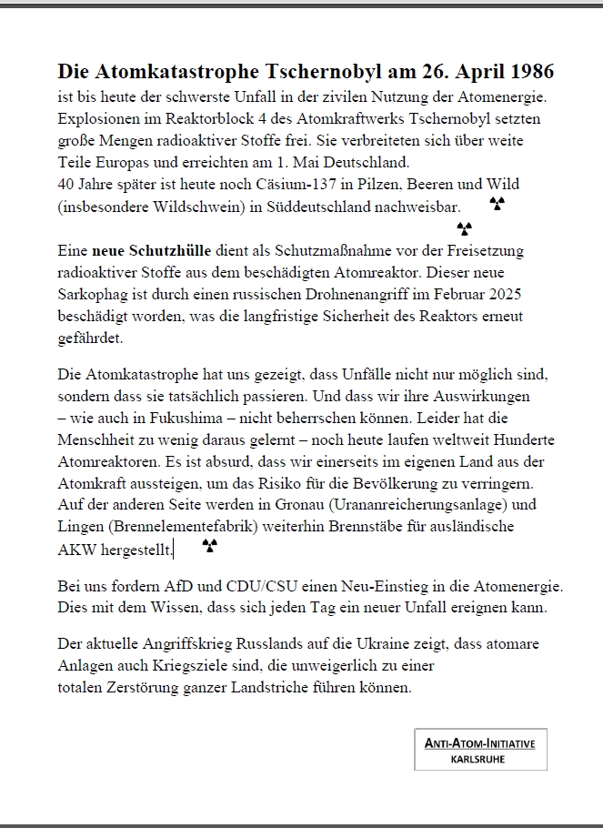 Seit diesem Jahr führt das Friedensbündnis Karlsruhe immer am 2. Mittwoch des Monats eine Mahnwache zwischen 17:00 und 18:00 Uhr auf dem Marktplatz durch.